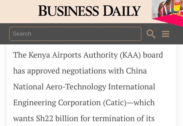 参考资料:肯尼亚商报 2021-07-30《中企向肯尼亚机场管理局索赔220亿肯先令》