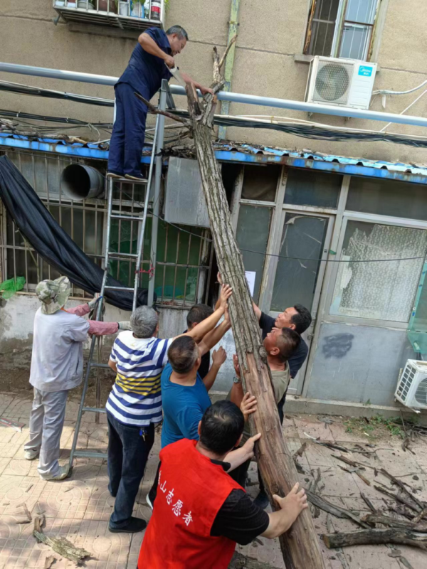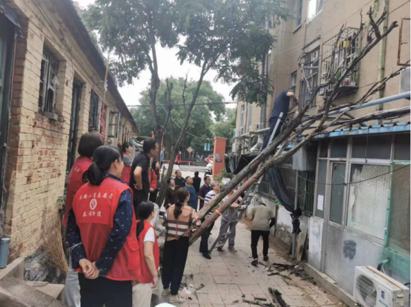 巡查过程中,社区网格员先后到辖区危房石油配件厂宿舍、东岳大街南糖茶站开展隐患排查,受雨水影响,东岳大街南糖茶站宿舍院内一棵香椿树倾斜,影响居民安全,社区了解情况后,立即联合物业将此树砍伐并清除。社区网格员与附近居住的居民就生活情况、房屋安全状况进行了询问,叮嘱居民发现安全问题一定及时撤离。同时,社区也利用网格微信群等方式进行防汛安全宣传,提醒居民在汛期要提高警戒意识,做好防汛准备,以确保人员生命、财产安全。