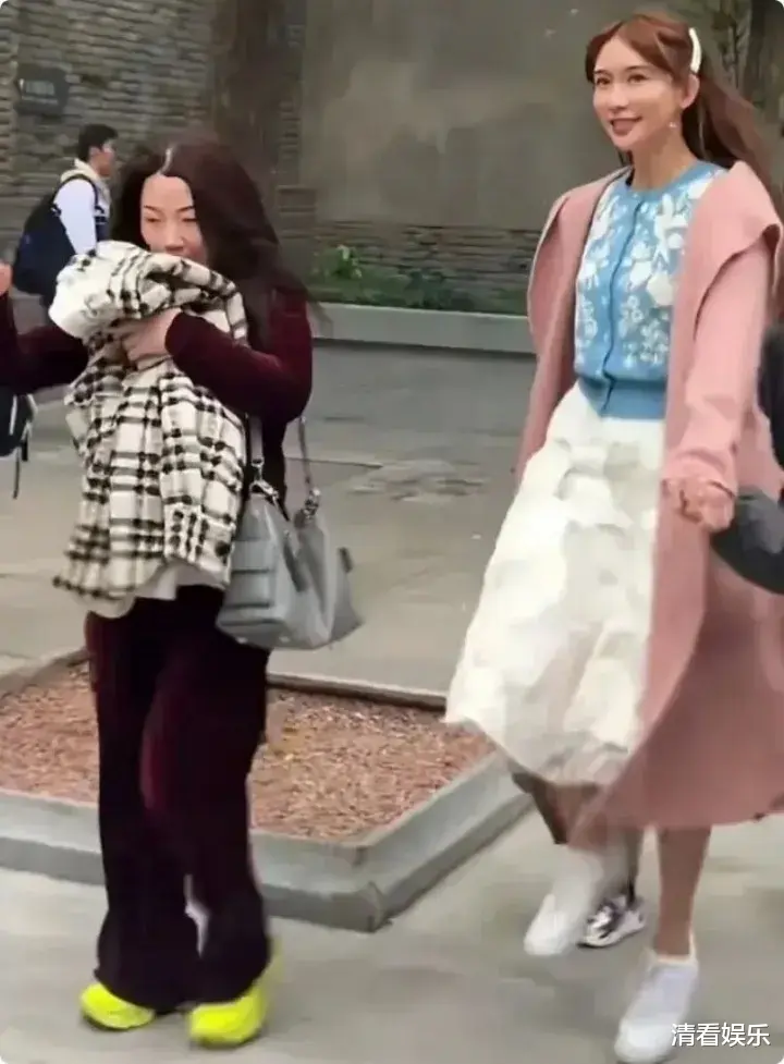先不说一身大粉色毛衣搭配牛仔裤本身就有点土土的,整个人脸上的气色看起来不太好,蜡黄蜡黄的;眼角的法令纹、黑眼圈也格外明显,看起来很疲惫的样子。