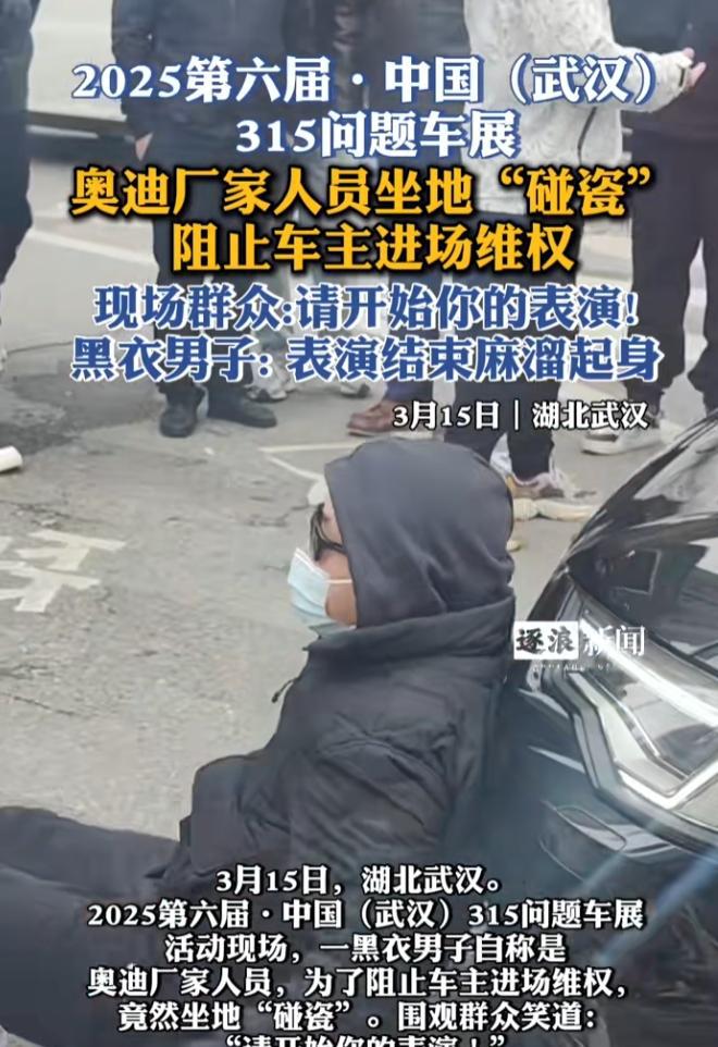 事情经过是这样的:在武汉3·15车展上,一辆奥迪A6L被奥迪工作人员以“碰瓷”的方式拦截。 具体细节虽然众说纷纭,但核心矛盾在于,这名工作人员的举动极度粗暴,明显意在阻止车主进一步投诉或曝光车辆问题。 这名工作人员的行为被现场围观群众拍摄下来,迅速在网络上发酵,引发了轩然大波。一时间,“奥迪碰瓷”“3·15车展闹剧”等关键词冲上了热搜榜单,奥迪的品牌形象也受到了严重冲击。