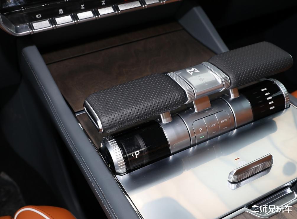 比如中控台上对称的档把,很像航空器的操纵杆,皮革、金属的应用非常显精致。