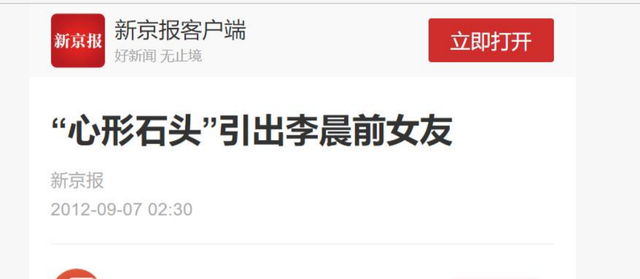 信息来源:百度百科——李晨——个人信息、演艺生涯新京报——2012年9月7日——“心形石头”引出李晨前女友