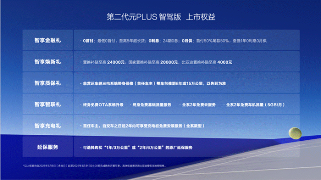 3月5日,比亚迪在紧凑级纯电SUV领域的重磅车型——第二代元PLUS智驾版正式上市,全系标配天神之眼C -高阶智驾三目版(DiPilot 100),售价为11.58-14.58万元。