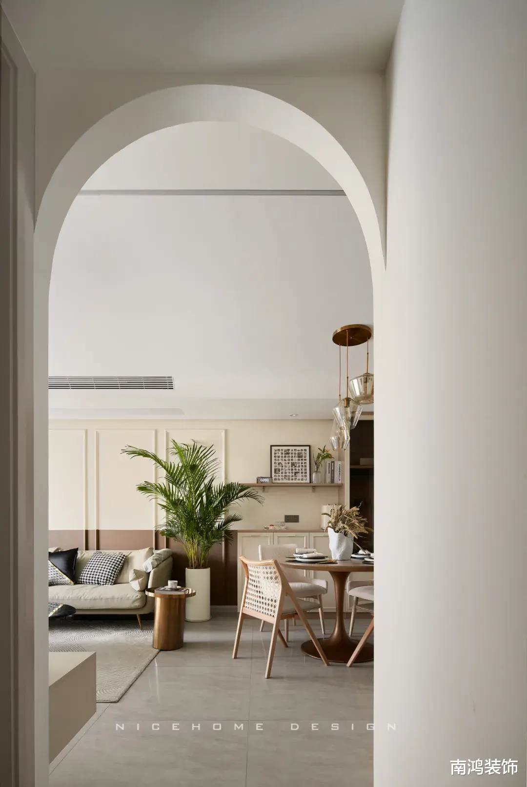 拱门的外型与直线构成鲜明对比,视觉上便能拉伸层高,更能让整体空间变得柔和浪漫。