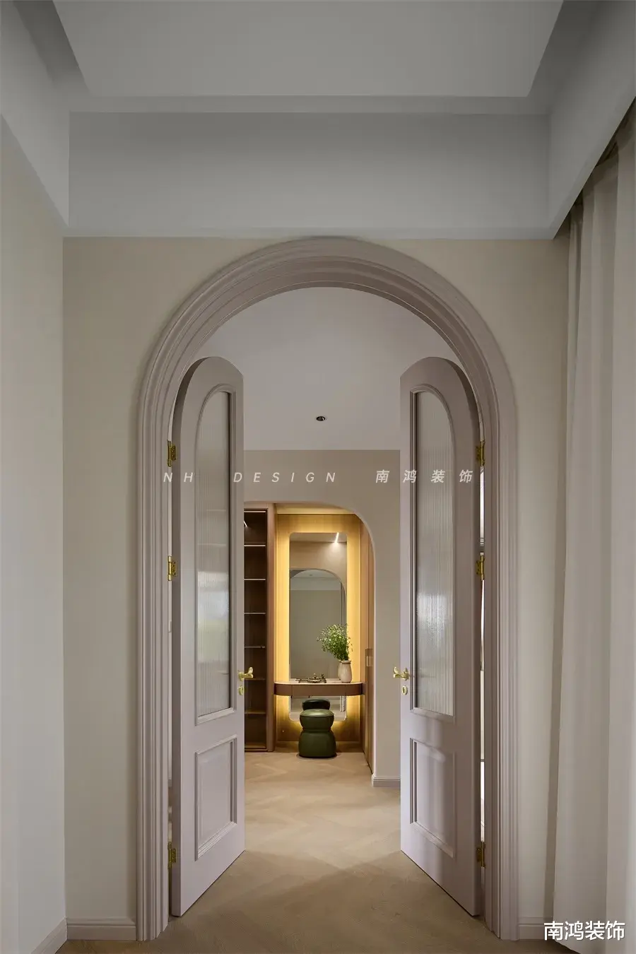拱形门洞是传统法式中的经典元素,用于营造宫殿般的恢弘感,在轻法式中也颇为常见。