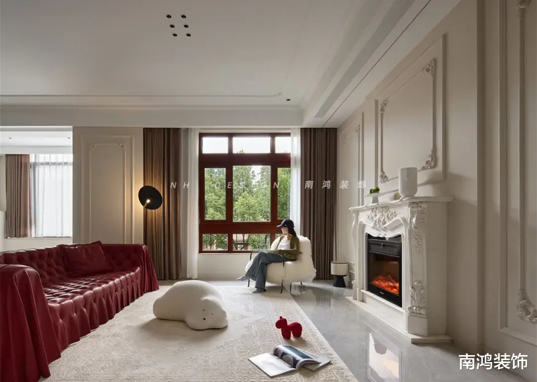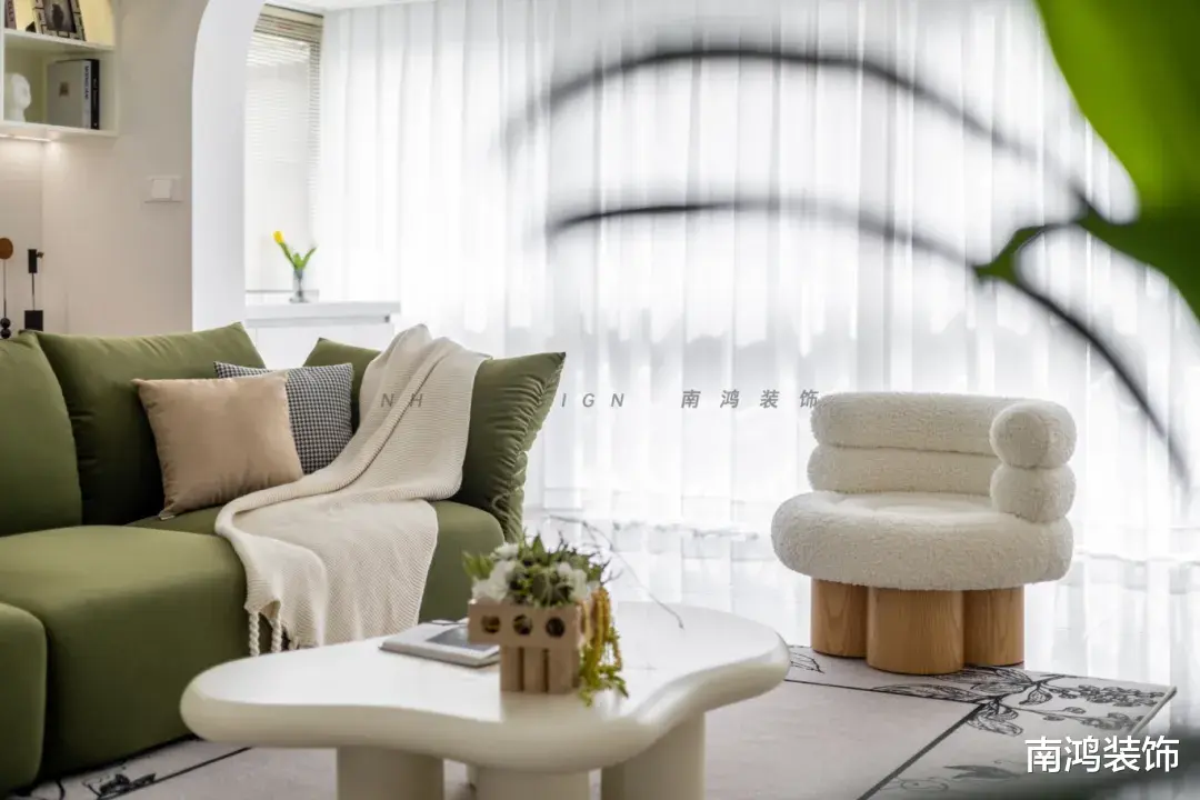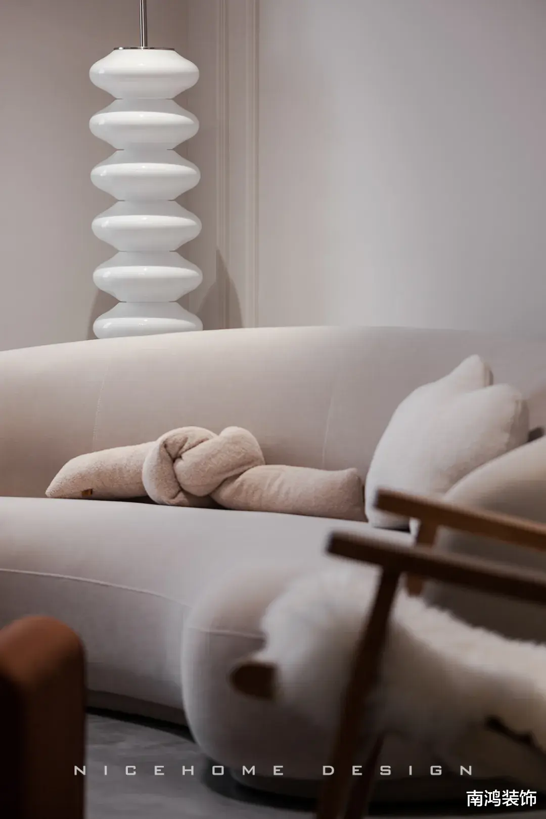 客厅中的沙发、茶几、单椅等选择圆润饱满的款式,看着就软软糯糯的,更符合法式风格的主题。