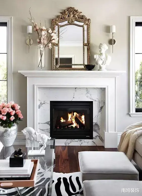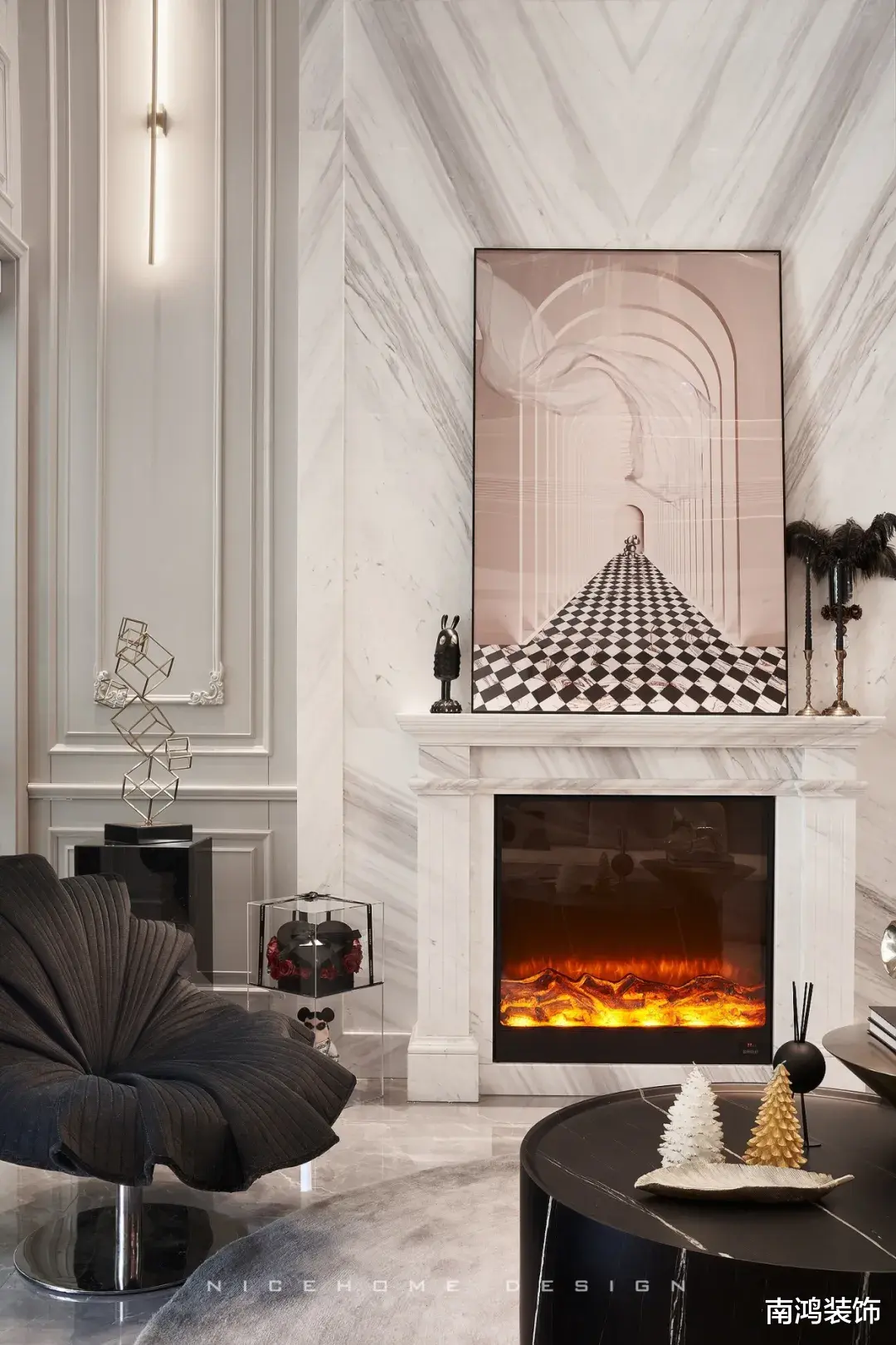 壁炉亦可以作为一个陈列台,上面摆放装饰画、烛台、花瓶、香氛、手工制品等,让整体氛围更加生动!