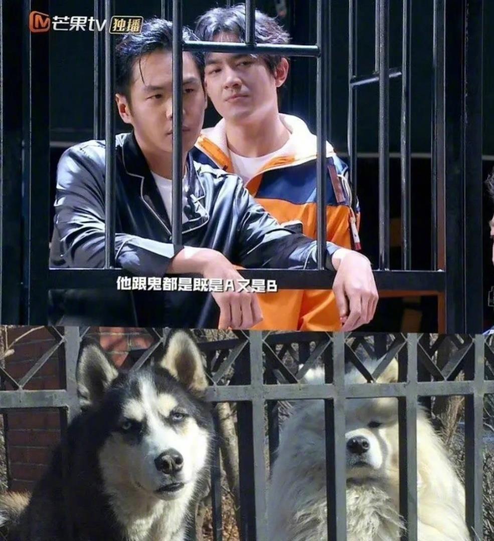 当时林更新和张若昀被指认为凶手,两个人扒着笼子的样子被网友开玩笑好像邻居家的两只傻狗。