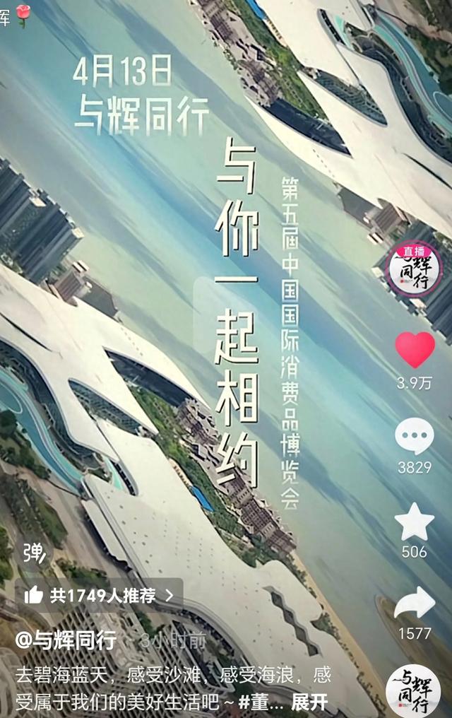 就在4月7日下午的16点零1分,“与辉同行”小编突然发布了一条让大家感到惊喜又稍显意外的官宣视频,因为这条视频是官宣“与辉同行”将参加“第五届中国国际消费品博览会”的消息,虽说这个消息宇辉早就跟大家透露过了,但如今正式官宣后,还是让大家的期待值拉满。