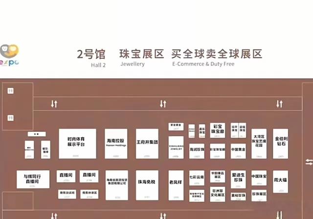 因为从这个场地位置图中可以知道,这次“与辉同行”在消博会的直播间被安排在了2号馆珠宝展区的入口最显眼的位置,可以说是该展馆的最佳C位了,而且直播间面积也比旁边的其它几个直播间大了一圈,是该展馆几个直播间场地里最大的。