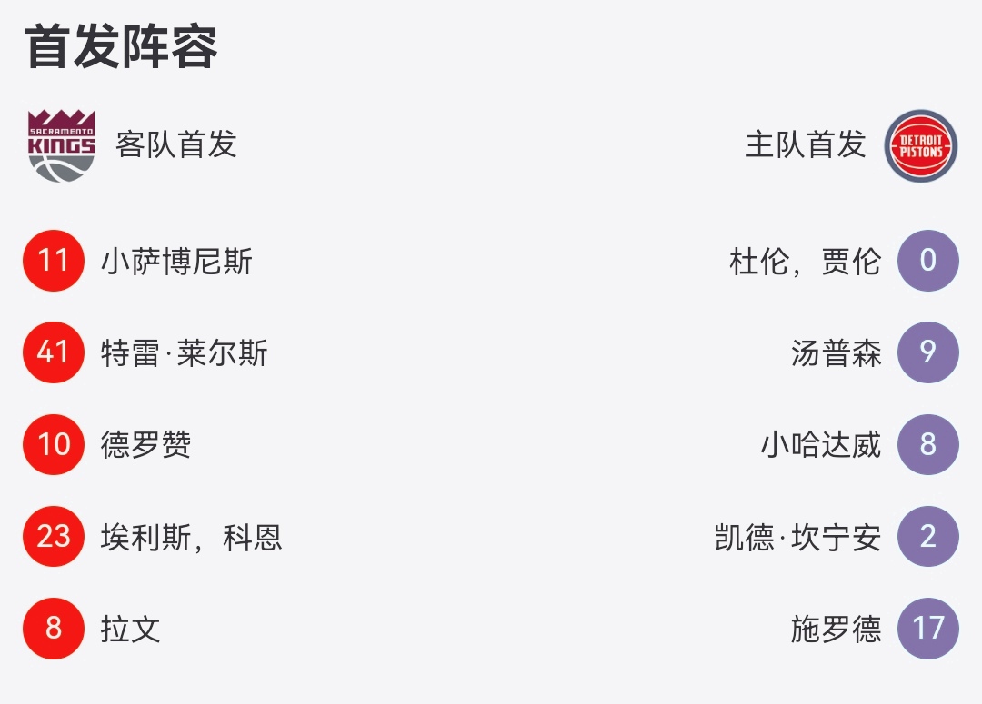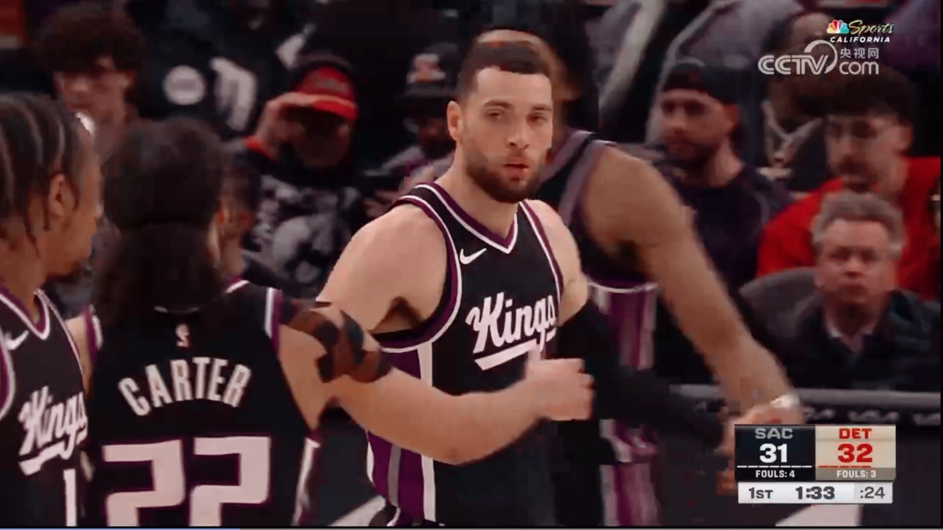 临场战术解析:比赛开局,国王队迅速进入状态,凭借小萨博尼斯的篮板优势和拉文的精准投射,迅速拉开比分。国王队的进攻节奏极快,尤其是德罗赞的突破和拉文的外线投篮配合得天衣无缝。两人合力引领球队打出了一波波流畅的进攻高潮。反观活塞队,尽管凯德·坎宁安展现出了不凡的个人能力,但由于球队整体防守松散,未能有效遏制住国王队的火力。