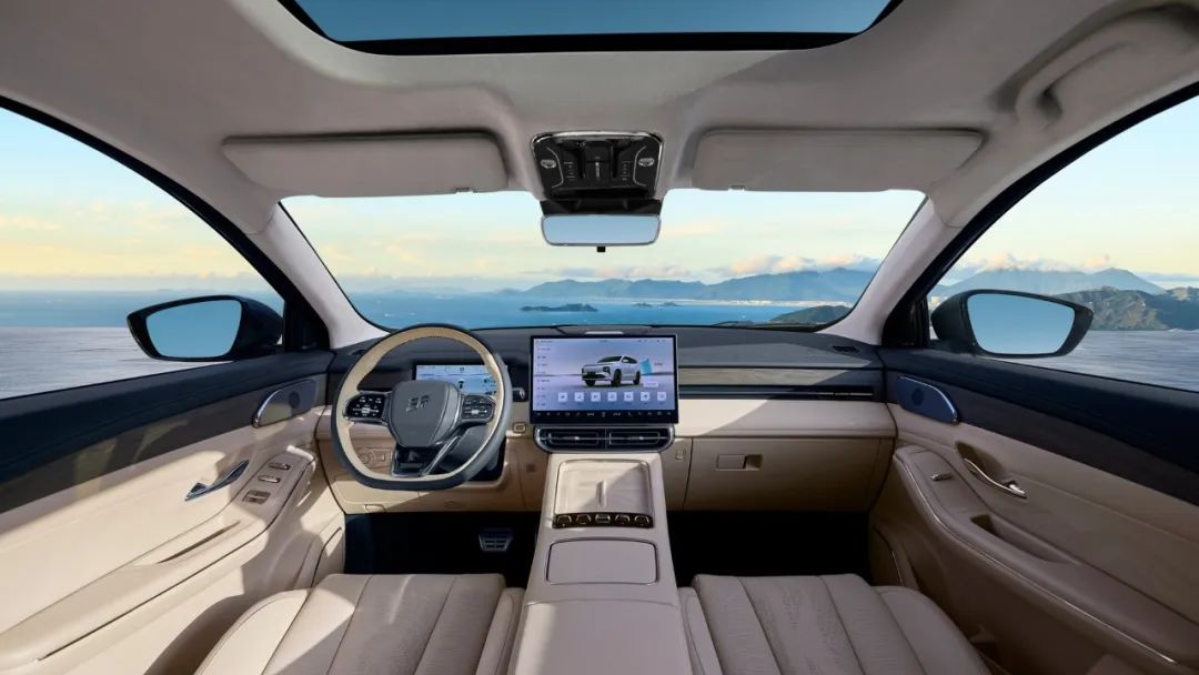“行云式环绕超长灯带”与“瀚海流光尾灯”如同星河洒落,成为夜色中一道流动的风景线。车内 “流水曲觞内饰”营造出环抱式的沉浸氛围,“山海画卷中控台”则将山水诗意与前沿科技完美结合,搭配触感细腻、视觉精美的“水晶按钮空调面板”,共同构成了兼具视觉与触觉享受的座舱空间。