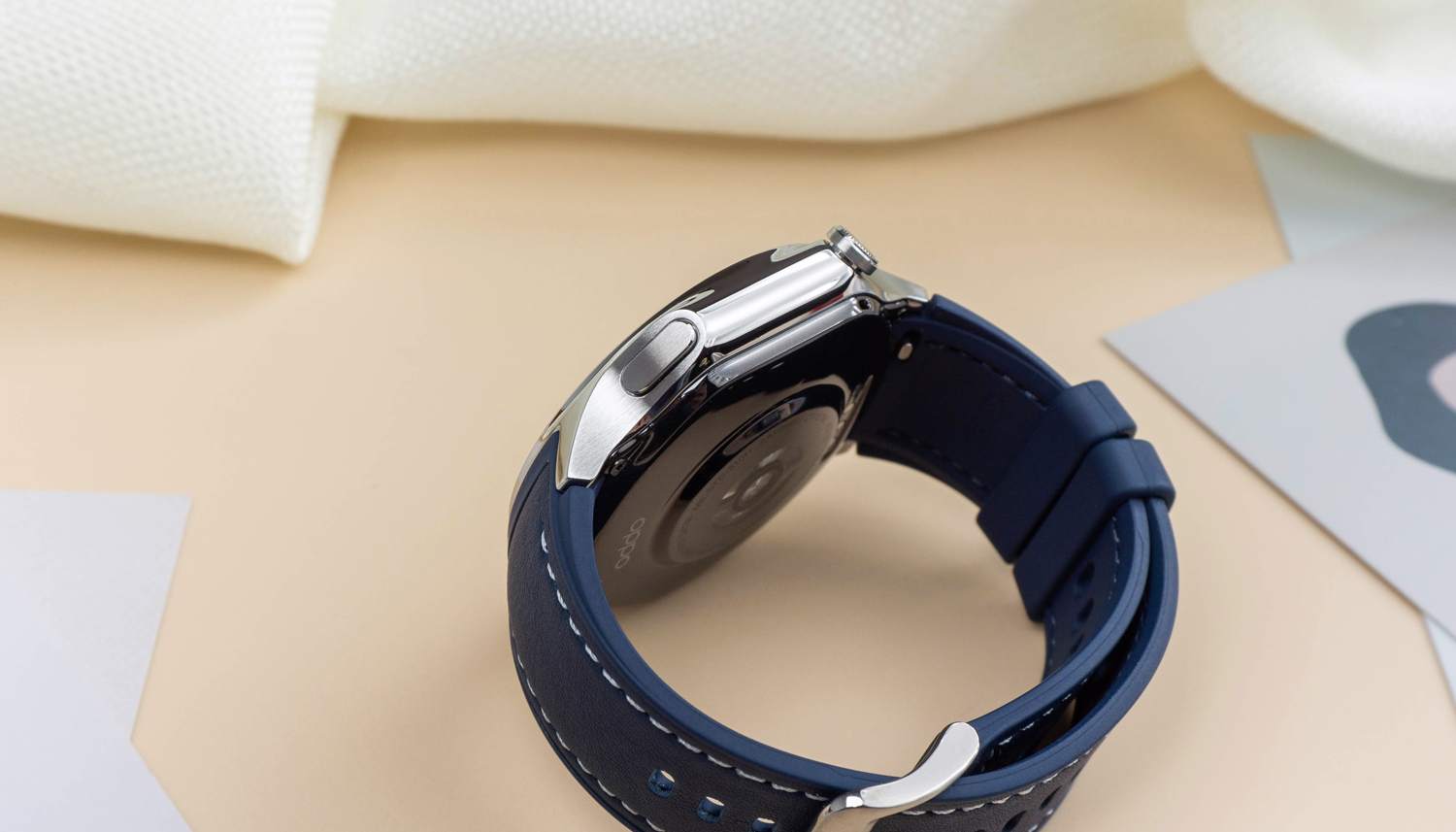从实际体验来说,两种表带各有优势。氟橡胶表带偏运动场合,具有出色的防水性、耐磨性,使用寿命长;真皮表带的饰品感较强,折叠时质地柔软,触感也更加细腻。而17个针孔,再加上双环圈固定,让OPPO Watch X可适用腕围在140至210mm。