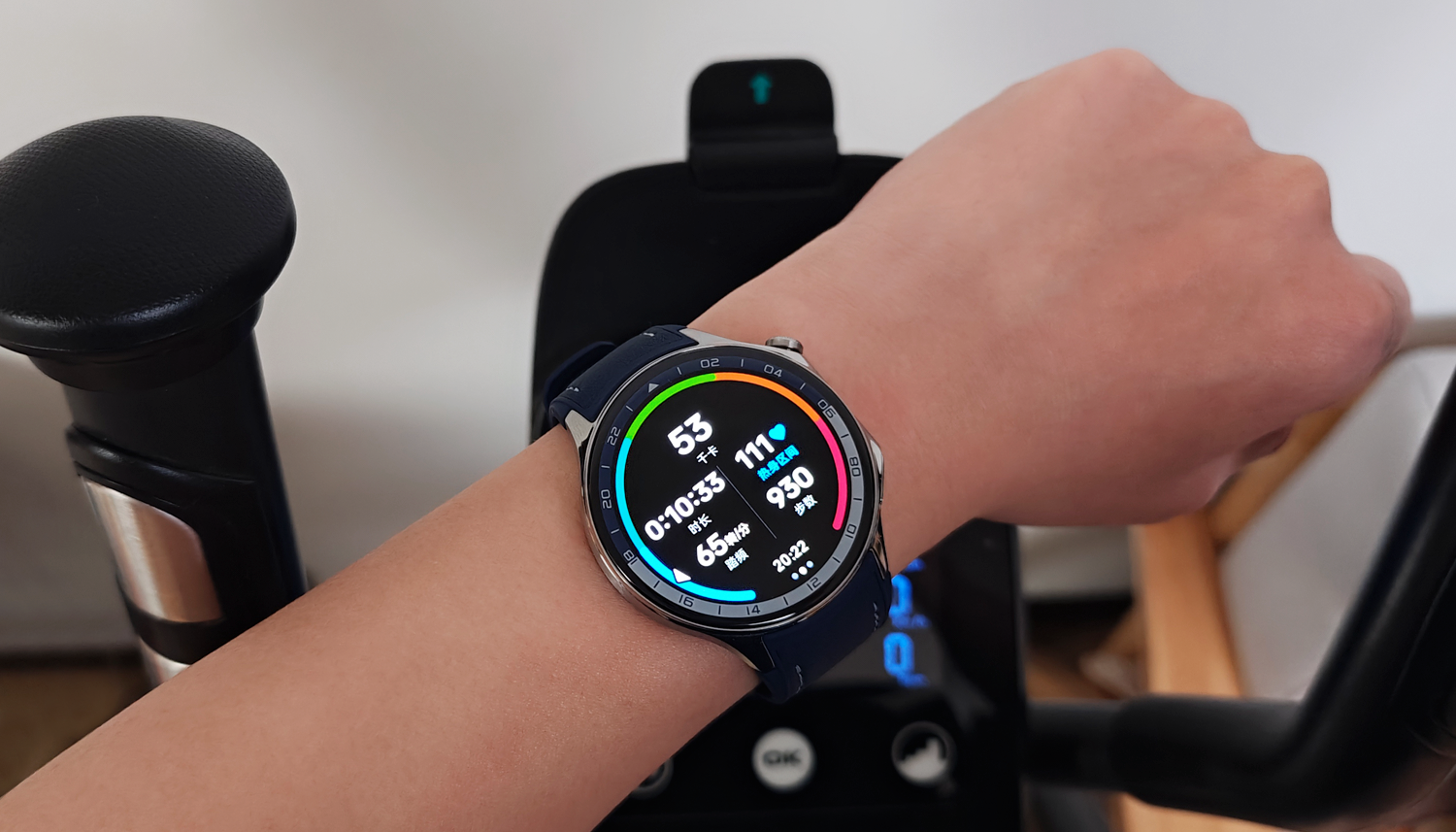 运动10分钟左右,抬起手腕后可以看到步数、踏频、时长和卡路里、即时心率都有完整记录。实际上当我们佩戴了OPPO Watch X后,也就不再需要紧握椭圆机的固定检测握把,转用两旁的自然握把进行锻炼即可。