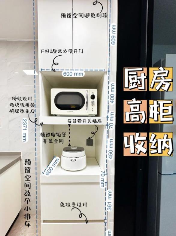 这个柜子的大小可以根据家里厨房空间合理的规划一下,有些人觉得,本来厨房就小,还多做这么一个通顶的大柜子,那不是厨房就更加小了吗?