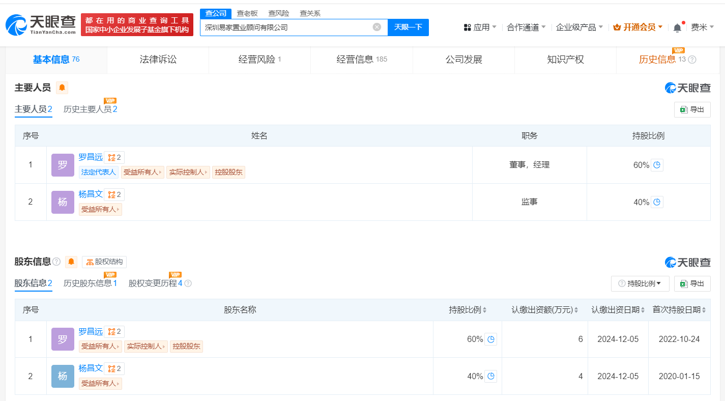 该公司成立于2020年1月,法定代表人为罗昌远,注册资本10万人民币,经营范围包括房地产经纪、房地产营销策划、市场调研、从事广告业务等,由罗昌远、杨昌文共同持股。此前,30多名男子被该公司销售人员以婚恋名义诱导购房一事,引起广泛关注。记者从深圳龙岗区住建局获悉,该公司未向主管部门备案,系非法中介,相关调查工作正在开展中。