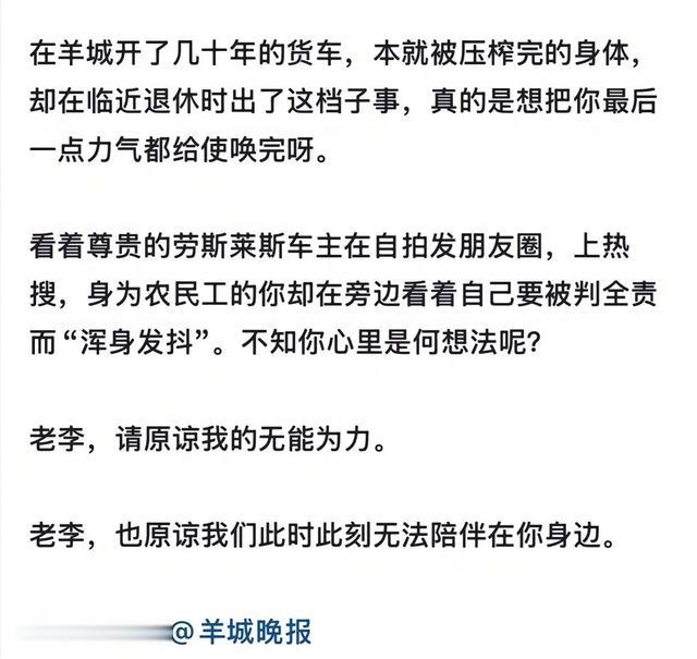 在这篇文章中,他表达了对羊城(事故发生地)的不满,以及对家庭可能因这场车祸而遭受的负面影响的担忧。