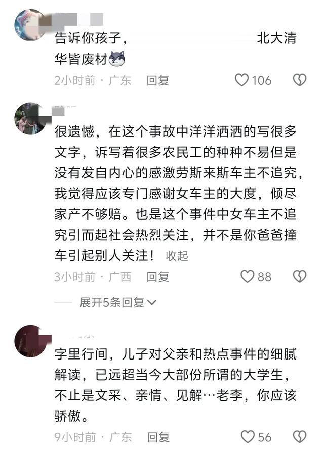 因此,对于老李儿子的文章,有人看到了真情流露,有人则看到了矫情与不满。