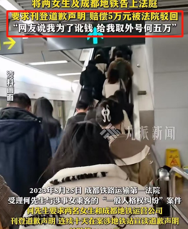 他把这两位女子和地铁站告上了法庭,诉求是希望能够公开道歉和赔偿精神损失费。