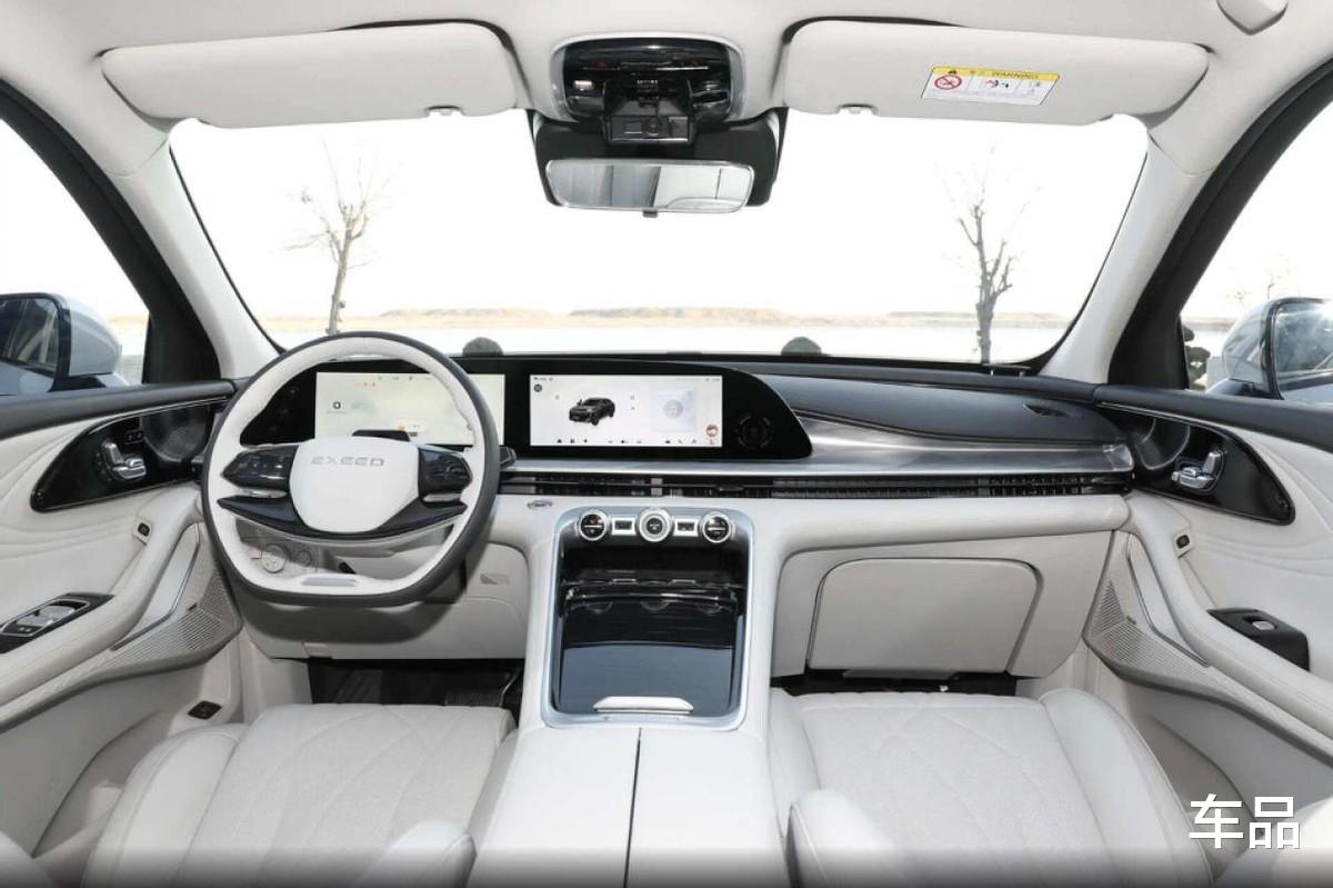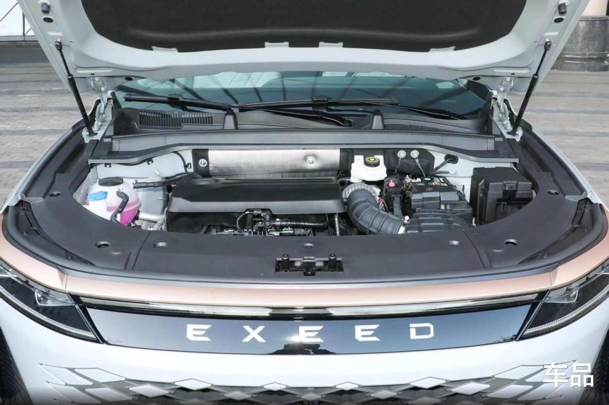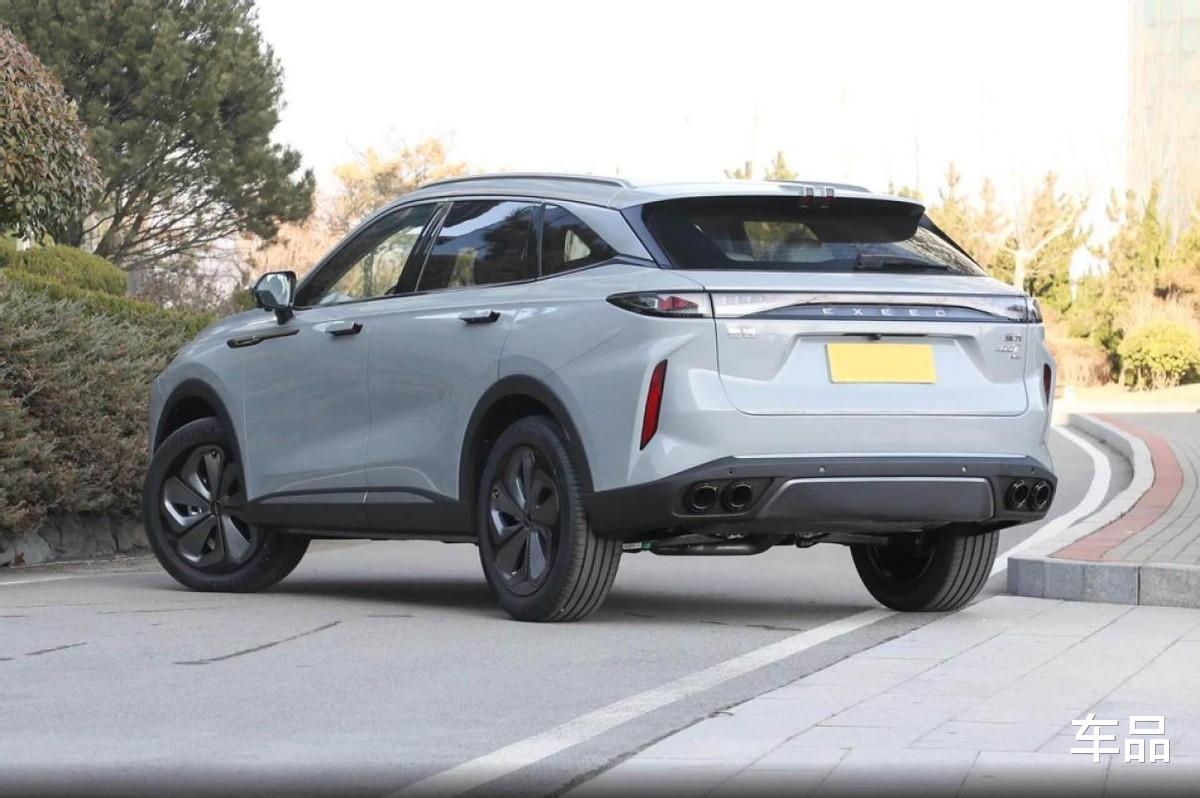 尾柱区域利用镀铬饰条的搭配串起了车窗线上沿,让车顶带有了一些悬浮效果,尾窗带有较大的倾角,使得上方的扰流板更为锋利和凸出,侧面延伸而来的线条环绕车尾一周,横向元素的使用也让车尾整体视觉效果更宽,贯穿式的尾灯两侧更为宽扁锐利,并且延伸到侧面与腰线相融合,灯组下方同样加入了刻有“EXEED”的黑色饰板,车尾两侧配有竖状的示宽灯带,黑色组件包覆的车底在两侧配有各两出的圆形尾喉,看上去气势更为充足。