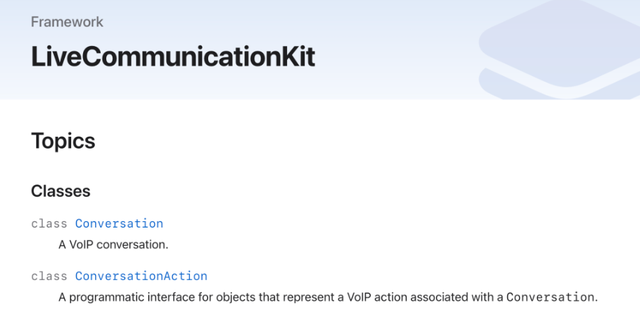 不过最近有开发者提出,该新功能很可能并不是CallKit,而是一项基于 LiveCommunicationKit 框架的平替功能。