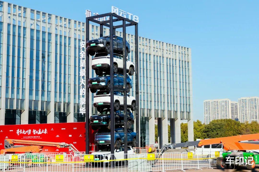 此次活动,风云T8还进行了新能源汽车首次挑战6倍自重的安全测试,从标准、结构、用料三大方面彰显了新时代国民车的新标准,顶住了民族汽车的安全脊梁。7辆风云T8叠成高度超10米的“车塔”,位于最下方的风云T8负重超过10吨,相当于顶住了近4头大象的重量。经过超72小时的严苛测试,风云T8无明显结构变形,彰显了硬核安全实力。