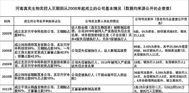 作为真实生物大股东实控人的王朝阳一些公开可查询信息: