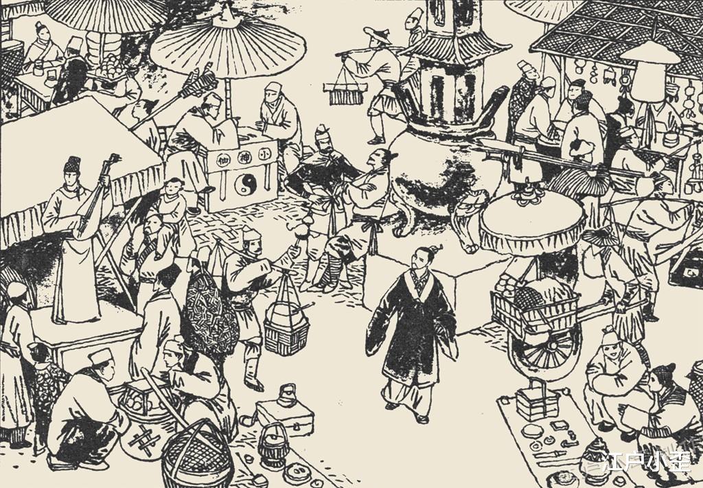 北京的风俗街市热闹非凡,罗希贤很擅长表现这类百工百货,带烟火气的群像。