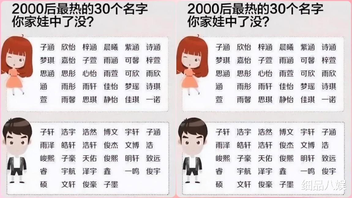 如果不愿花费精力取好听的名字,直接拿正流行的名字来用就是了,“李子轩”“赵子涵”“张梓萌”都可以。再不济,哪怕取个“李小明”“王小红”“张梅梅”也行啊。