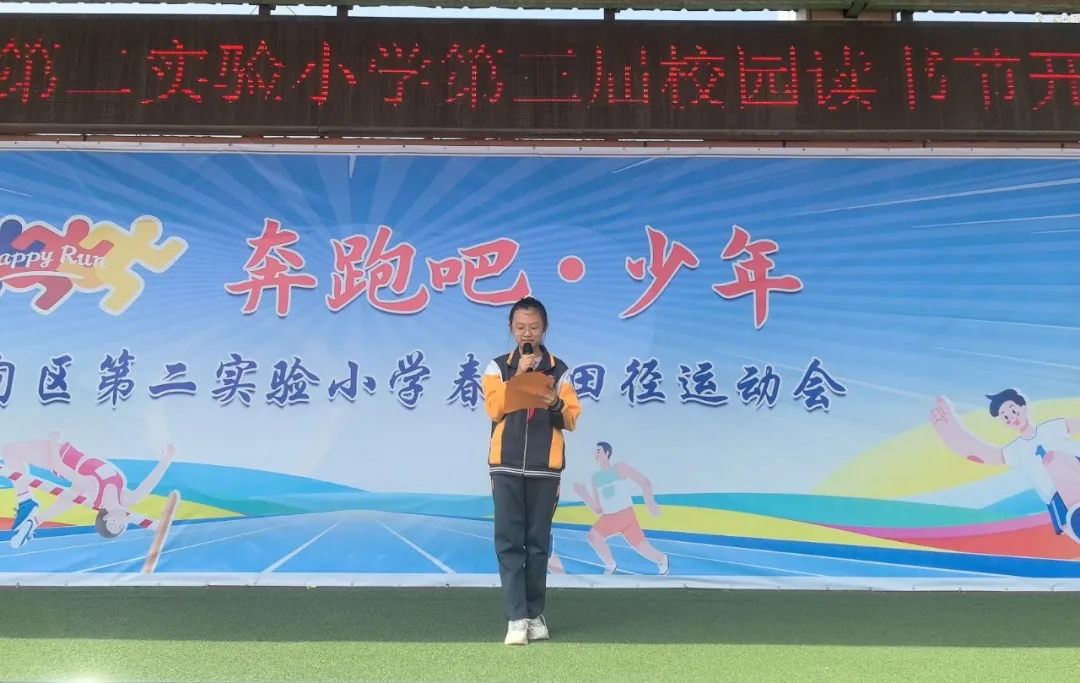 学生代表张芯畅带着自己对读书的热爱,用真挚的语言向全校学生发出倡议,大家要制定阅读计划,每天坚持阅读,并做好读书笔记,将“爱读书、多读书、读好书”作为一种习惯,使阅读成为生活的一部分;做到“读书三到”,在阅读过程中,用正确的姿势阅读,做到爱护眼睛;积极参与读书节各项阅读活动,乐于与同学、家人、朋友分享自己喜爱的书籍和故事,体验、分享阅读的快乐;遵守班级借阅规则——爱护图书;阅读后能将图书放回原位;定时分类整理图书。