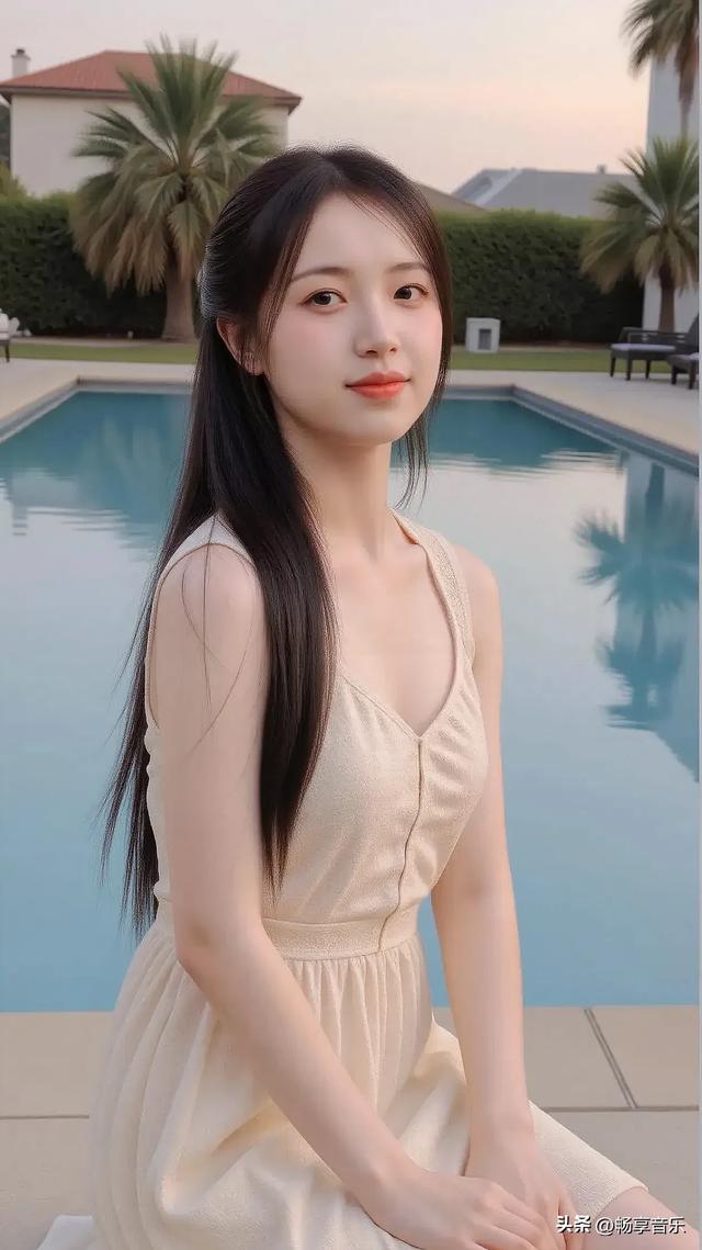 温柔甜美的少女,浅浅的微笑,优雅的姿态,仿佛时光静止在这一刻。