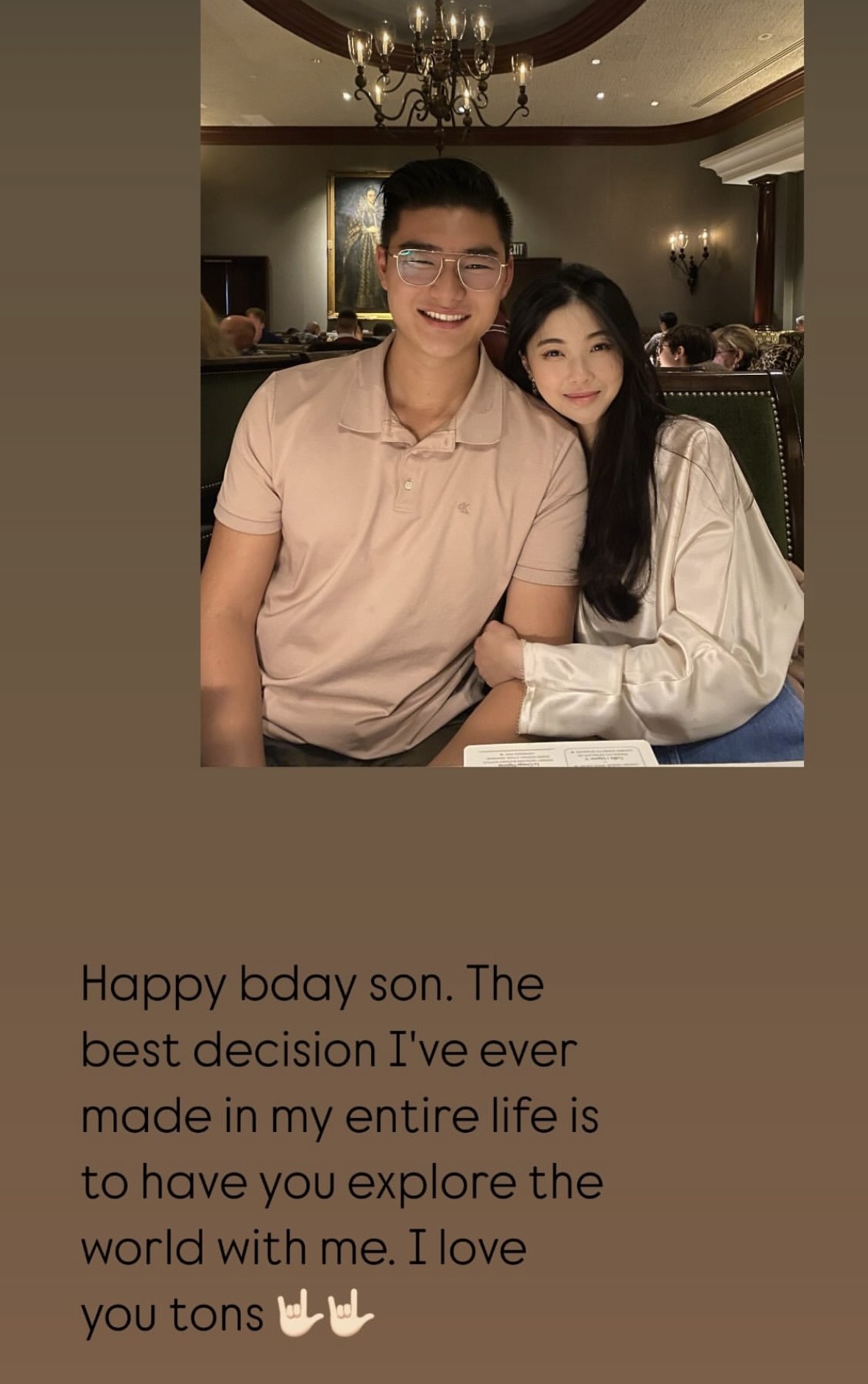 她用英文写道:“儿子,生日快乐,把你带来这个世界与我相伴,是我这辈子做过的最佳的决定。