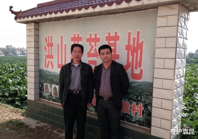 洪山菜苔产业协会叶晓佑会长(左)与陈日东在洪山菜苔基地