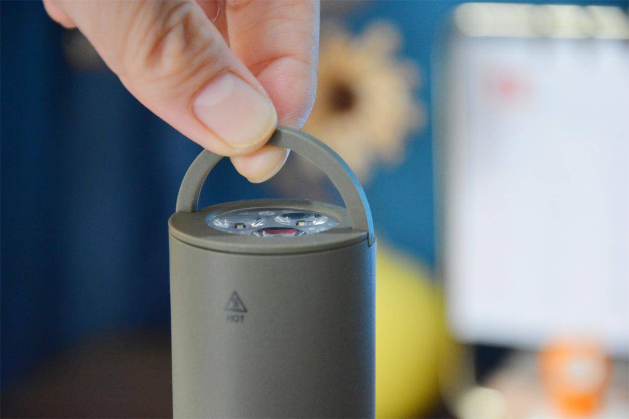 而尾端外圈还有一个小小的隐藏手提,露营可以把它挂在树枝或支撑杆上面,小细节很贴心。