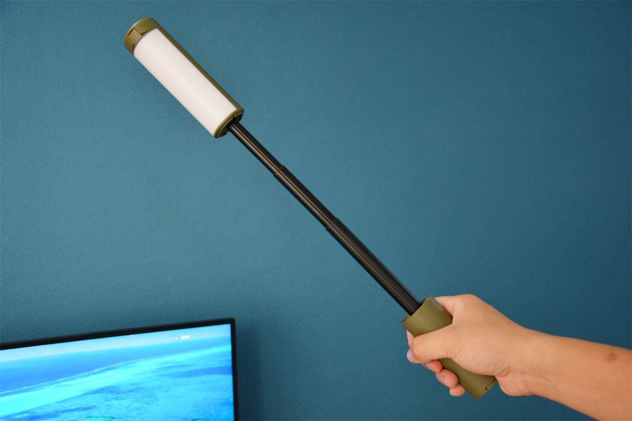 乍一看这款纳拓悟空露营灯的外观就是这么简单,但实际上它又“内藏玄机”,像孙悟空的金箍棒一样能七十二变。在白色和绿色机身连接的地方,它采用可伸缩设计,一共5节伸缩杆,可伸缩长度达40cm,站着不动可以照明到更高、更远的地方。