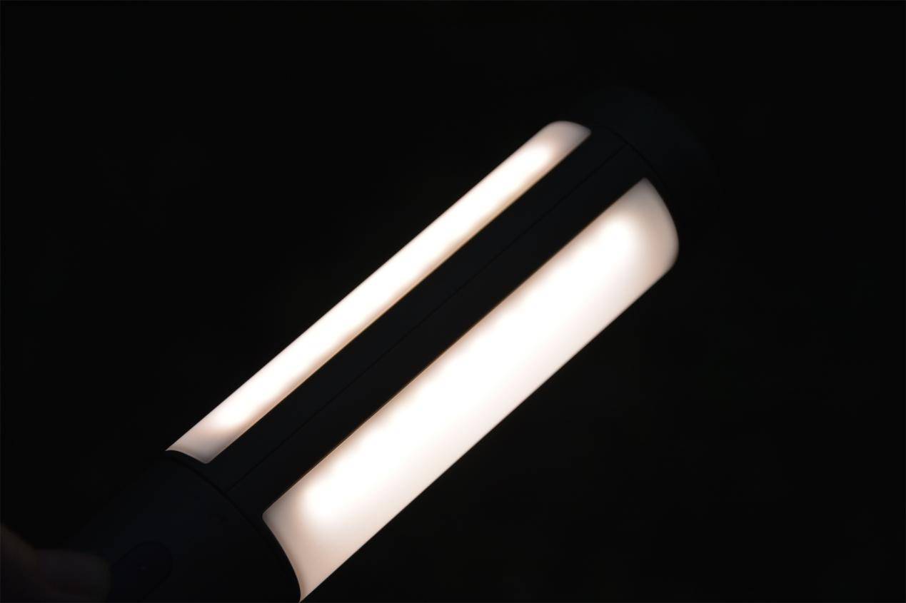 打开开关,这款纳拓悟空露营灯就马上亮起来了。从这灯源照明效果来看,光线均匀柔和,一点不刺眼也没有明显的屏闪。