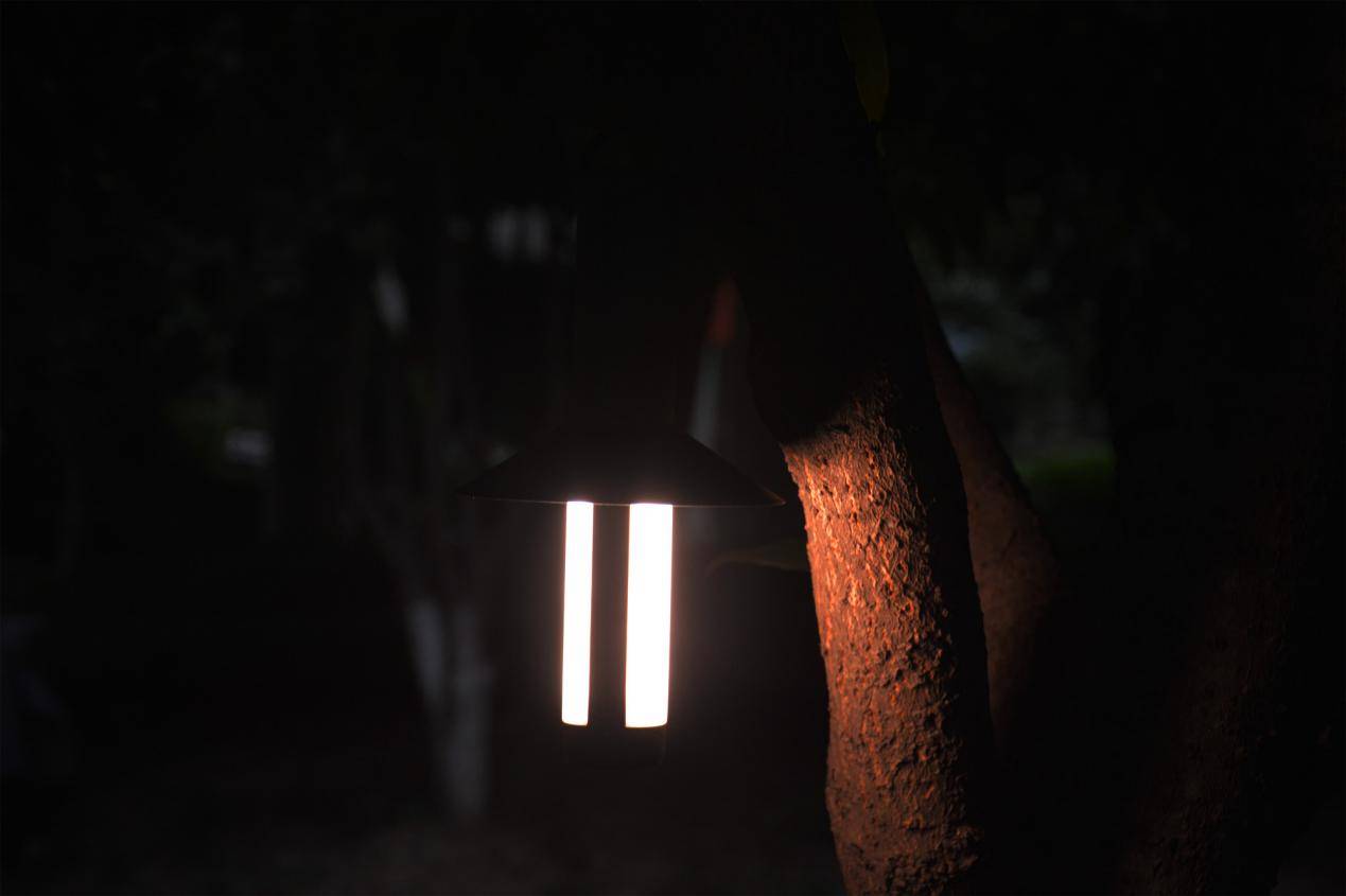 晚上天黑的时候,拿在室外可以明显起到照明的效果,但又不像那种亮的特别耀眼的路灯,露营氛围马上就有了。