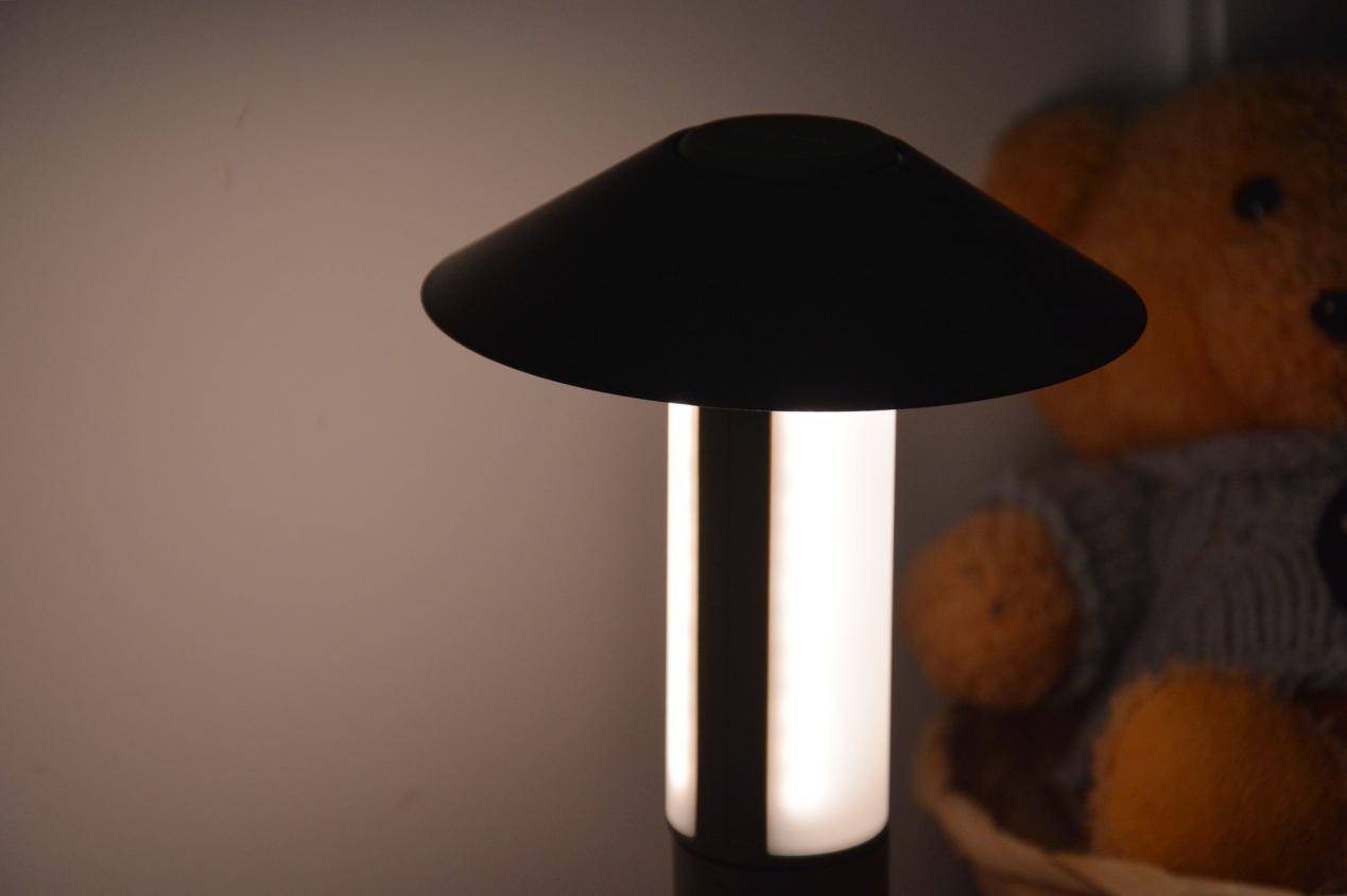 晚上睡觉时,关灯漆黑一片夜里起床上厕所不方便,把纳拓悟空露营灯亮度调至最低,再有伞一样的底座稍微遮挡一下,这黄色的暖光一点不影响睡眠不说,而且放在床头做氛围灯也很有情调,比台灯又更好看。