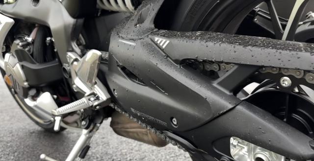 裸露的透镜大灯和立体的日间行车灯也是无极第一次在实车上尝试,车头正中的进气孔也不是摆设,为冲头冲压进气的作用。这一次RR500S在做工上的提升非常明显,我们可以通过实拍图看到不管是上下三星台、主车架还是后摇臂、后脚踏等铝合金件都经过统一的处理,表面拥有一层非常温润的喷漆。可以说这也是目前为止无极细节处理得最精致的一台。
