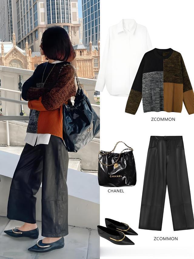 几乎要把秋天所有的颜色都拼接到一起的宽大毛衫,