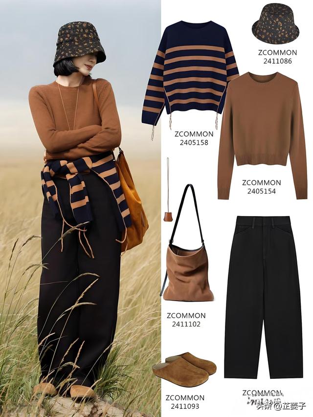 Look 8咖色和米白色的组合,是非常经典的温柔气质搭配。