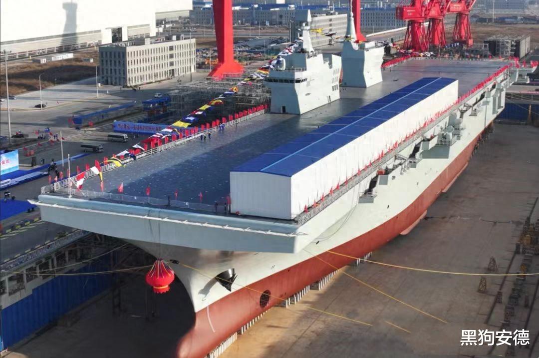 应该是标准排水量为4.5万吨以上,正常排水量就是5万吨出头,而满载排水量应该接近6万吨。于是关于8万余吨的正确解释,就是标排8万5左右,正常排水量8.8万,满载排水量在9.3万吨上下,完全看齐尼米兹级的早期批量。说完了排水量,那么再就是其为直通甲板双舰岛。这个作者的早期判断也比较准。再就是具备130米级的大型电磁弹射器外加配套的电磁拦阻系统,可以收放固定翼舰载机。原本大多数人判断,只能收放中小型的舰载无人机,而作者几乎是最早也最坚定的相信可以直接收放固定翼有人舰载机的极少数存在。而对下水出坞在年内完成也完全判断正确!在持续2天的船坞内注水与平衡测试过关后,新平台已经在今天正式出坞,然后在大马力拖轮的辅助下进入舾装港池的,