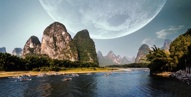 在这里,你可以选择乘坐竹筏,缓缓地漂流在漓江上。竹筏在江面上轻轻摇曳,仿佛是在画中穿行。沿途你可以欣赏到翠绿的山峰,有的像骆驼,有的像大象,有的像仙女,形态各异,栩栩如生。山峰之间,云雾缭绕,仿佛是人间仙境。在黄布倒影处,你可以看到一块巨大的黄色岩石,宛如一匹展开的黄布,倒映在江水中,形成了独特的景观。