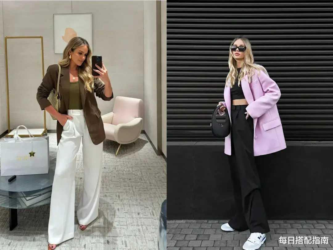 ▌公式2:西装+阔腿裤——大女主的气场宣言