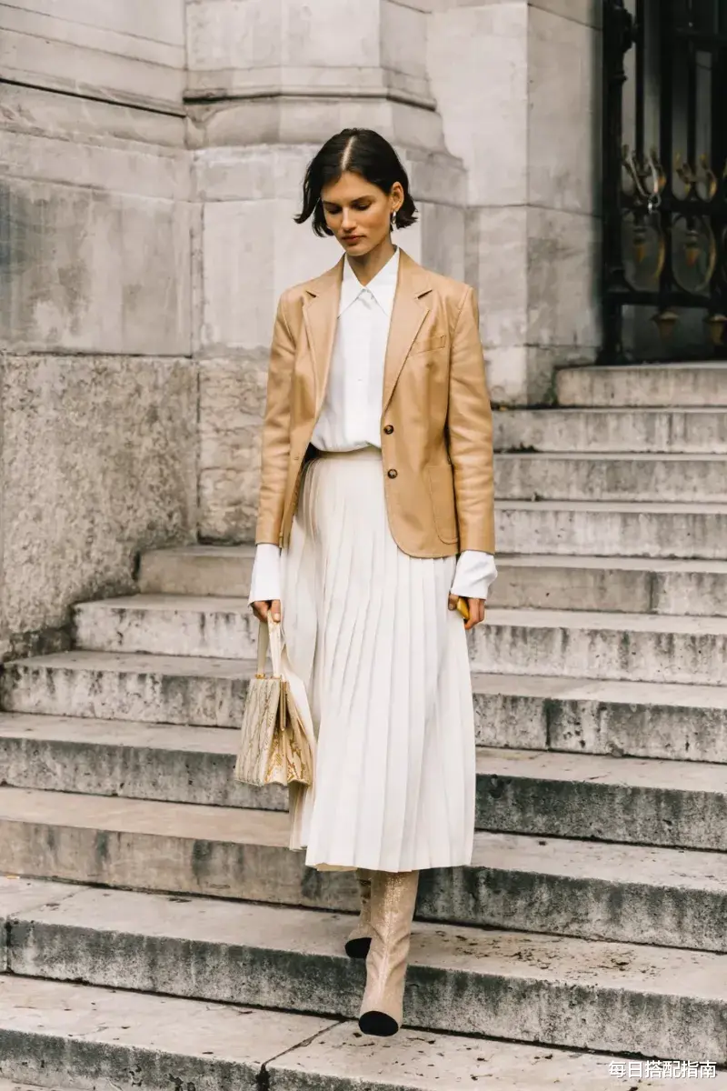 ▌公式4:西装+百褶裙——刚柔并济的反差美学