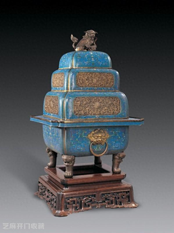 1:清晚期铜胎掐丝珐琅铺首衔环耳狮钮大香熏,尺寸:高119厘米,成交价:RMB246.40万