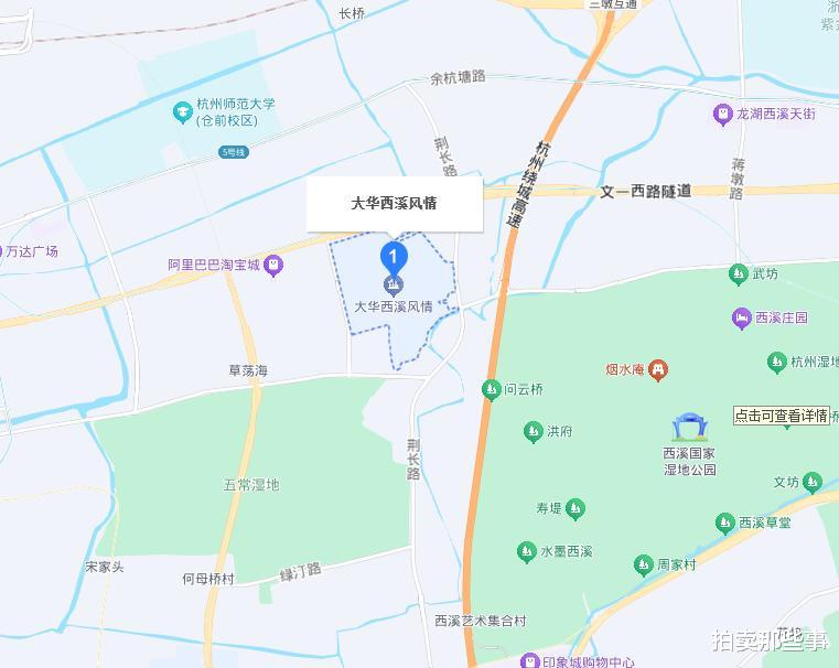 首先是西溪湿地旁的这套豪宅。这不叫做一套,而是叫做一栋豪宅,因为拍卖的是一栋别墅。西溪十点周边的豪宅,以别墅为主。此次拍卖的是杭州市余杭区五常街道西溪风情花园观止苑小区,这是一个处在五常湿地和西溪湿地公园之间的一个高端小区,区位优越。小区旁边就是阿里巴巴西溪园区。