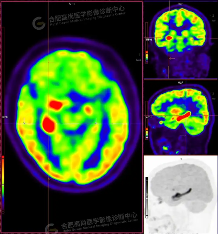 发作间期显像:双侧海马、及右侧基底节区FDG代谢异常增高,考虑致癫灶可能大,请结合临床。