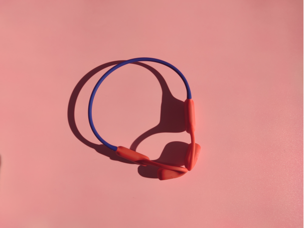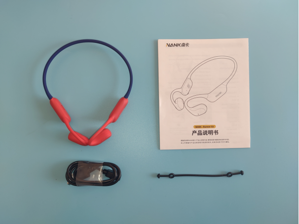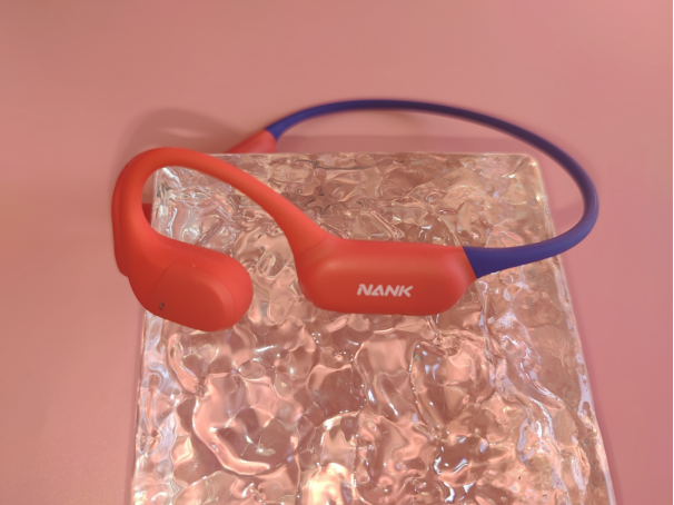 南卡气传导RUNNER AIR蓝牙耳机有多款颜色可以选择,本人这次入手的是海棠红款产品。耳机的表面上层被红蓝色撞色的磨砂亲肤硅胶材料覆盖,触摸手感顺滑,两个下沉的组件与振膜内侧为红色的涂层,连接线为蓝色配色,凸显出青春活力的风格,在内测印制了产品的部分参数。