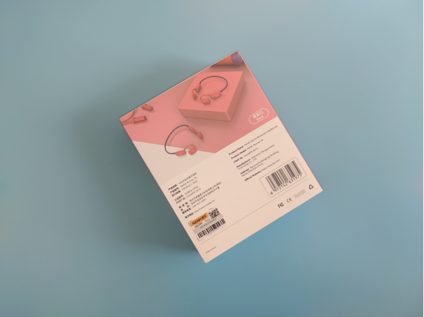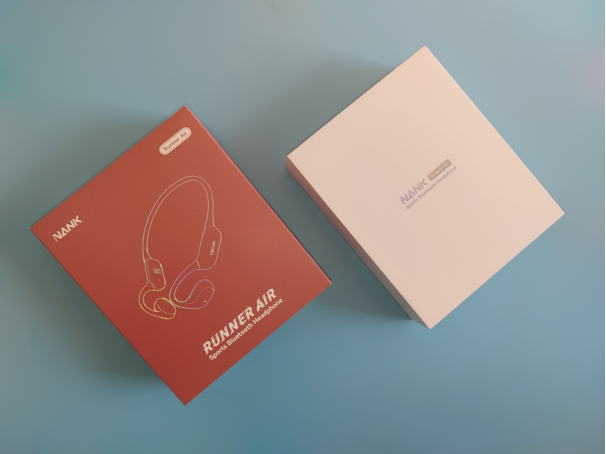 南卡气传导RUNNER AIR蓝牙耳机的外包装采用了神秘玫红色的纸盒包装科技感十足,盒盖正面印有产品的外观简画,一角标注了品牌logo,背面用中英两种文字标注了产品部分参数及厂商情况。包装整体内容丰富体现出厂家的设计功底。